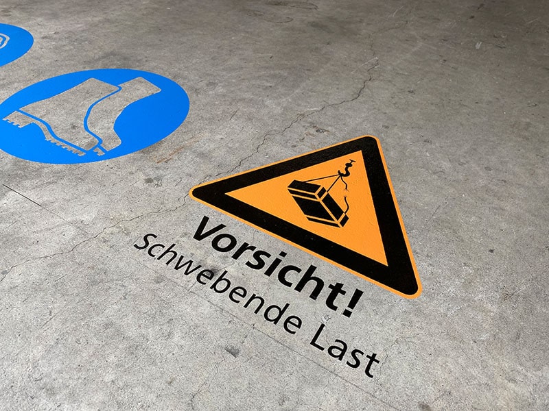 Auch als Signalisation oder Markierung kommt die Schabloniertechnik regelmässig zum Einsatz. Wir beschriften Ihre Parkplätze mit Ihrem Logo oder weisen mit Malereinen auf wichtige Schutzmassnahmen, Vorschriften oder den richtigen Weg hin.